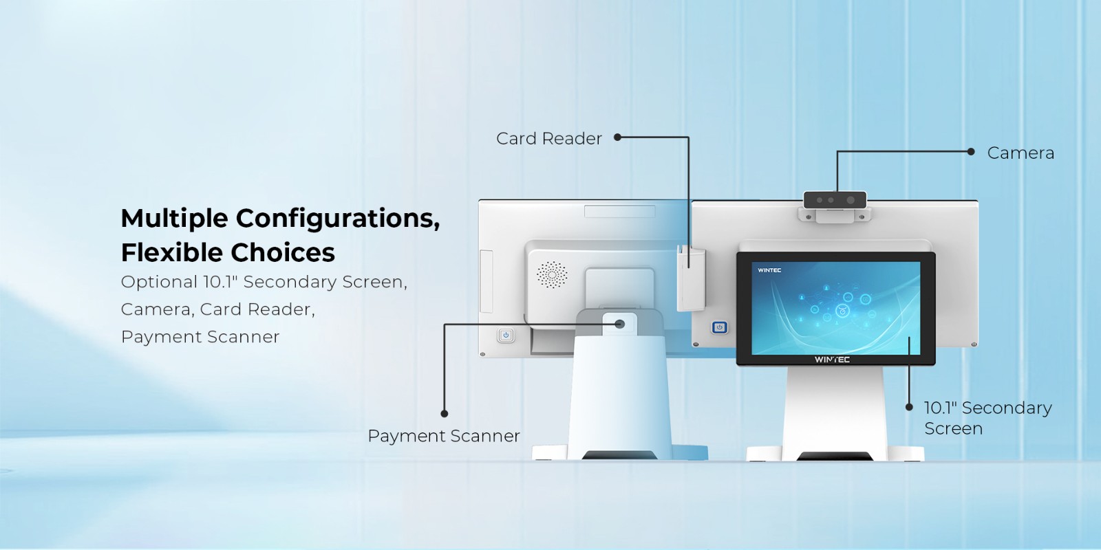 Interfaces6*USB, 2*RS232(DB9), 1*RJ45, 1*Cash Drawer, 1*HDMI,1*DC_OUT(12V)
